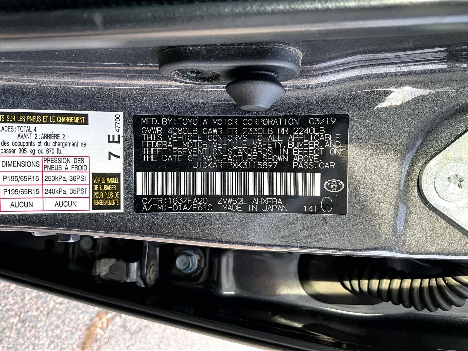 Plus | 79,265 milesStock # A04508A | VIN # JTDKARFPXK3115897